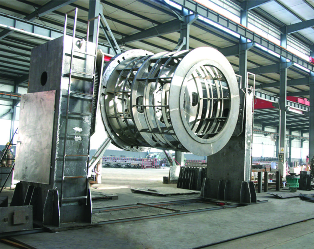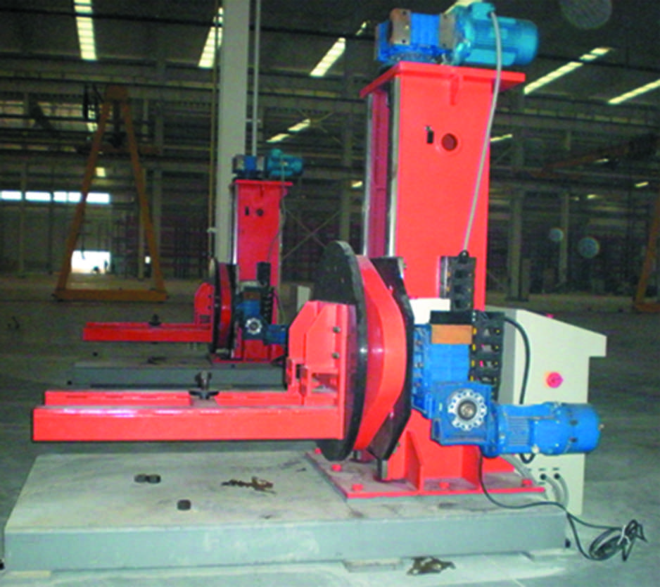 焊接變位機(jī)一般由工作臺(tái)回轉(zhuǎn)機(jī)構(gòu)和反轉(zhuǎn)機(jī)構(gòu)組成,通過(guò)工作臺(tái)的升降、反轉(zhuǎn)和回轉(zhuǎn)使固定在工作臺(tái)上的工件達(dá)到所需的焊接、裝配角度,工作臺(tái)回轉(zhuǎn)為變頻無(wú)級(jí)調(diào)速,可得到滿意的焊接速度。